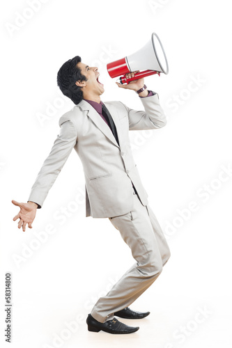 © imagedb.com, Fototapeta premium Businessman shouting into a megaphone