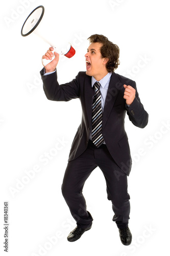 Fototapeta premium Businessman Shouting Through Megaphone