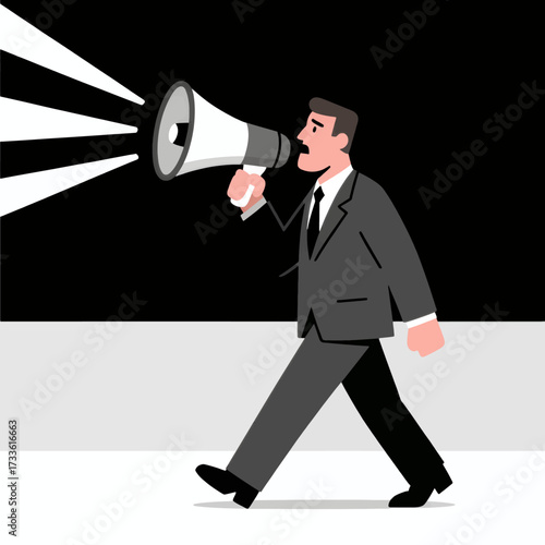 © TTh, Fototapeta premium Businessman shouting through megaphone against black background