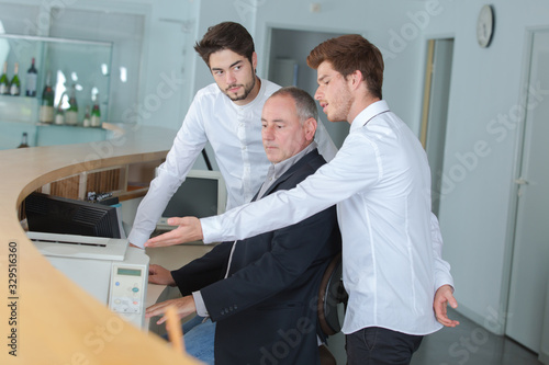 Fototapeta premium businessman standing at hotel reception