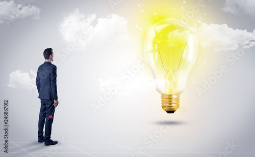 Fototapeta premium Businessman standing with his back with objects in his hand and looking at...