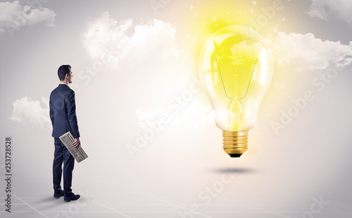 Fototapeta premium Businessman standing with his back with objects in his hand and looking at...