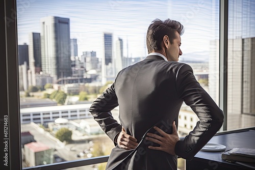 © ttonaorh, Fototapeta premium Businessman suffering from back pain in office. Toned image