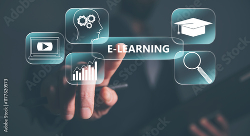 © ARAMYAN, Fototapeta premium businessman touching an e - learning concept