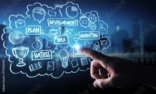 © sdecoret, Fototapeta premium Businessman using manuscript project presentation with his hand