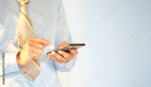 © WS Studio 1985, Obraz premium Businessman utilizing smartphone and technology concept, space