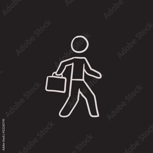 Fototapeta premium Businessman walking with briefcase sketch icon.