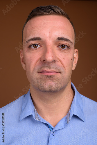 Fototapeta premium Businessman wearing blue shirt against brown background