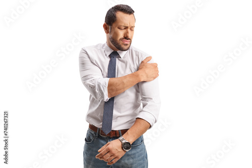 Fototapeta premium Businessman with an injury holding his shoulder