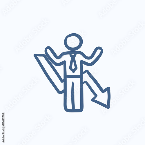 Fototapeta premium Businessman with arrow down sketch icon.