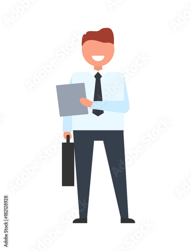 © robu_s, Obraz premium Businessman with Case Icon Vector Illustration