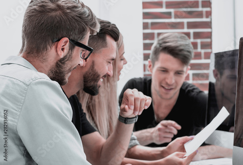 © ASDF, Fototapeta premium Businessmans working at her office by herself