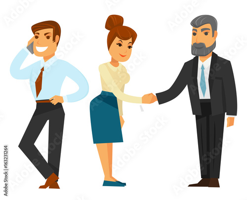 Fototapeta premium Businessmen and businesswoman in formal clothes illustrations set
