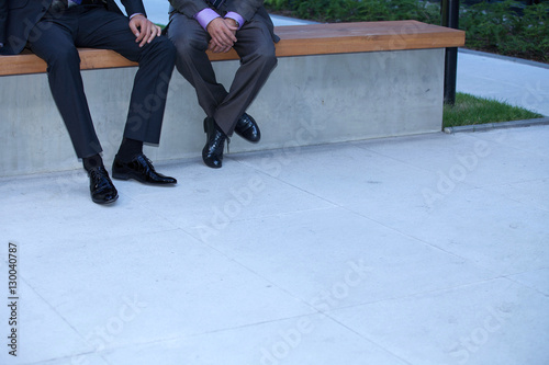 Obraz premium Businessmen sitting on wall