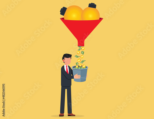 © Prasong, Obraz premium Businessmen turn their thoughts into income. Concept business vector illustration, Financial, Currency.