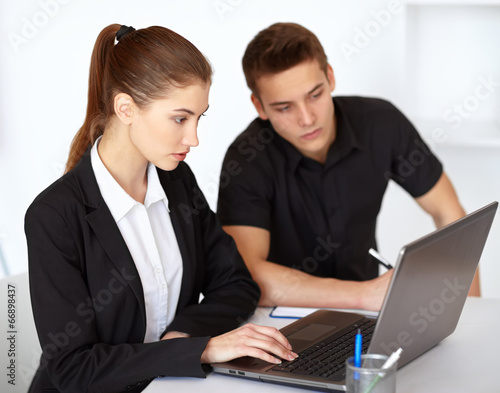 Obraz premium Businesspeople looking at computer screen