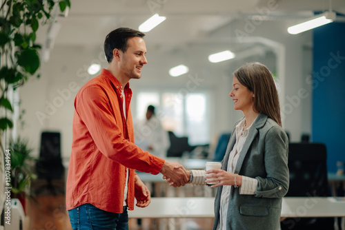 Obraz premium Businesspeople shaking hands in modern office during meeting