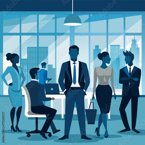 Fototapeta premium Businesspeople silhouette on office background, Vector business illustration