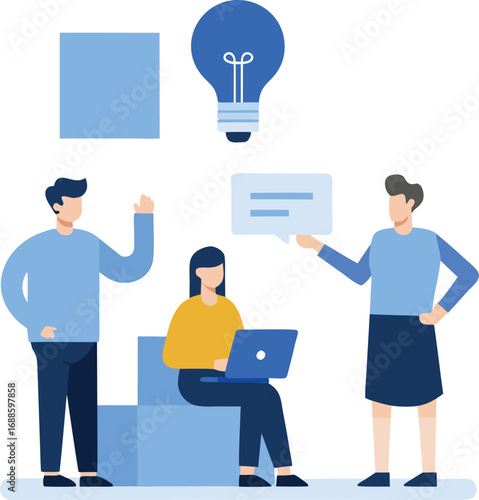 © MDKAYUM, Obraz premium Businesspeople team in a meeting, reviewing a large checklist representing a business plan or project tasks, with colleagues working on laptops and presenting ideas. Flat design vector illustration