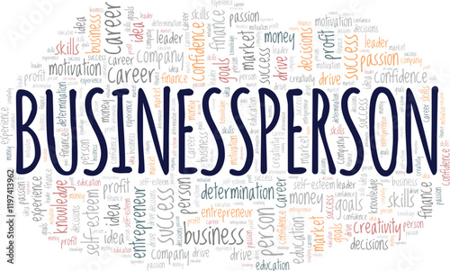 © Colored Lights, Obraz premium Businessperson word cloud conceptual design isolated on white background.
