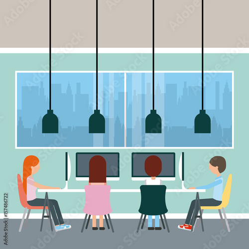 © Gstudio, Naklejka premium Businesswoman and businessman briefcase illustration icon vector illustration design graphic