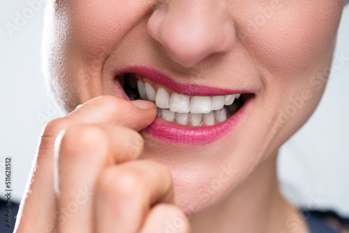 Obraz premium Businesswoman Biting Her Fingernail