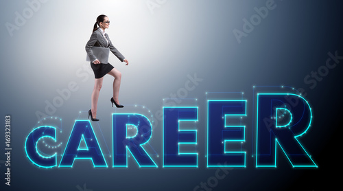 Fototapeta premium Businesswoman climbing career ladder in business concept