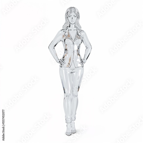 © Arceli, Obraz premium Businesswoman crystal glass design for 3D on plain white background