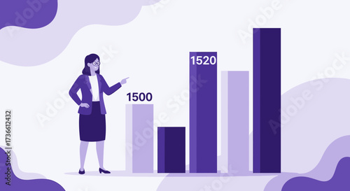 © FIA, Obraz premium Businesswoman Explaining Data Visualization Using Column Charts, Illustrating Growth
