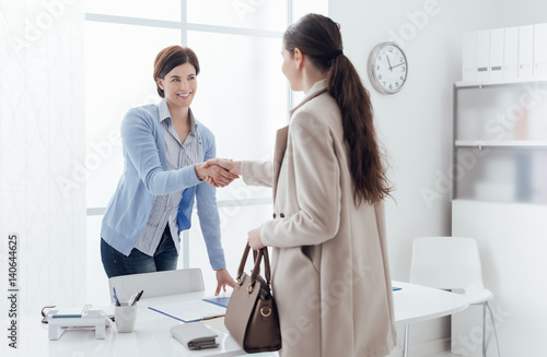 © StockPhotoPro, Fototapeta premium Businesswoman giving an handshake