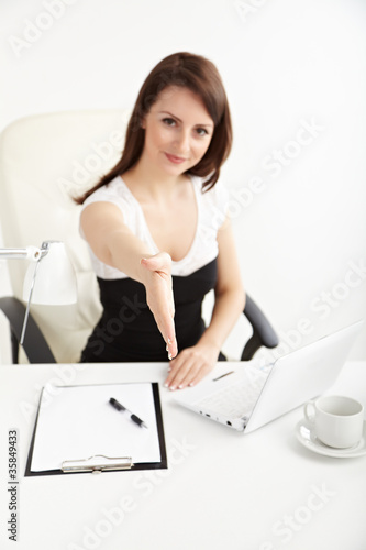 © Vadim Georgiev, Obraz premium businesswoman greeting