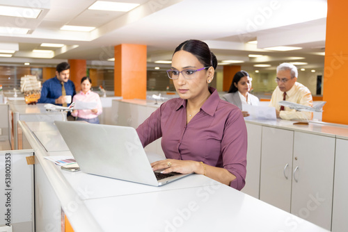 © G-images, Obraz premium Businesswoman having video call in the office