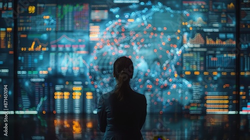 © Thanate, Fototapeta premium Businesswoman looking at a data screen.