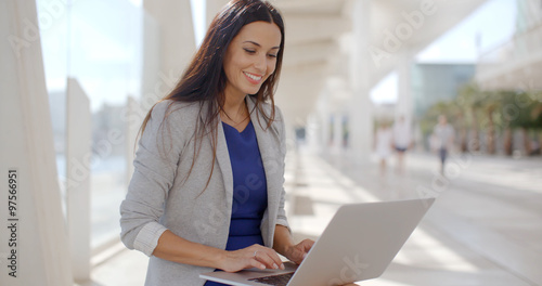 Fototapeta premium Businesswoman relaxing and working on a laptop