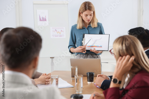 © New Africa, Obraz premium Businesswoman showing chart on meeting in office