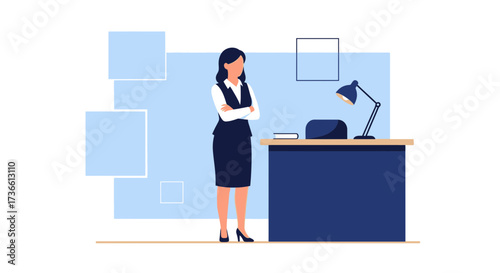 © ANNISA, Fototapeta premium Businesswoman standing in her office, illustration of female executive in the workplace