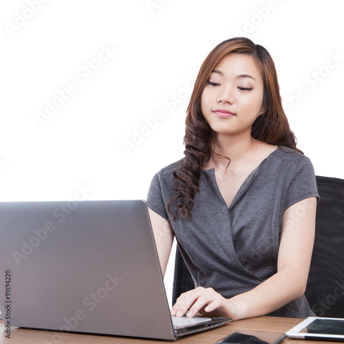 © Mckyartstudio, Fototapeta premium Businesswoman using laptop
