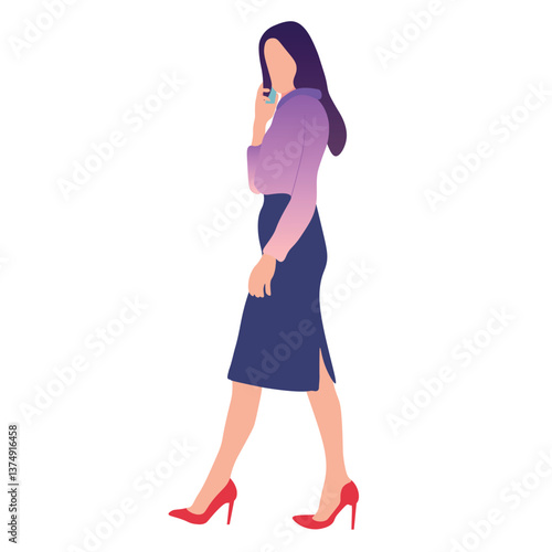 © Fianpanic, Fototapeta premium Businesswoman Walking and Talking on Phone