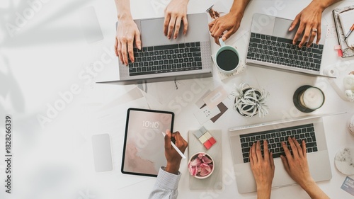 © Rawpixel.com, Obraz premium Businesswomen working together aerial view remix