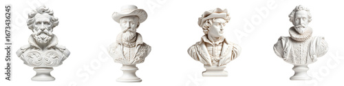 Obraz premium Bust Sculptures Collection: Renaissance Portraits Isolated on White Background