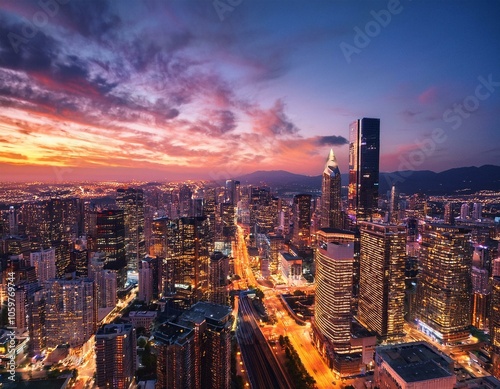 © hyoungjun, Fototapeta premium Bustling City at Sunset