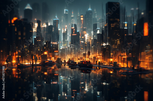 © Canvas Alchemy, Fototapeta premium Bustling cityscape of tall buildings at night