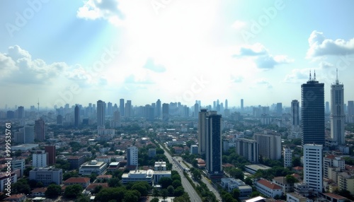 © SwathiFX, Obraz premium Bustling cityscape under a clear sky