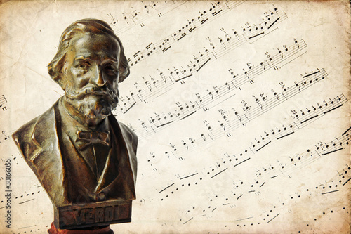 Fototapeta premium Busto di Giuseppe Verdi, spartito musicale