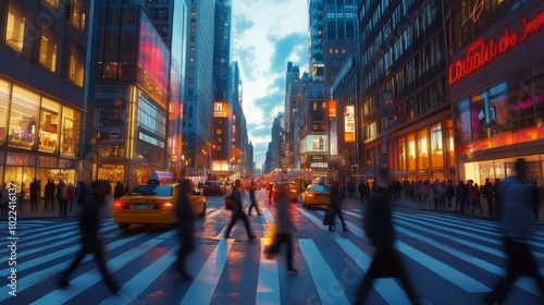 © IMAGINIAC, Fototapeta premium Busy City Street at Night with People Crossing a Crosswalk
