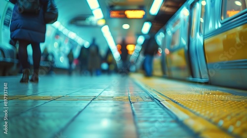 © vanilnilnilla, Fototapeta premium Busy Subway Platform in Chicago with Blurred Commuters