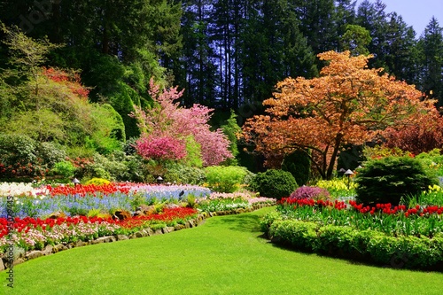 © Jenifoto, Naklejka premium Butchart Gardens, Victoria, Kanada. Wibrujące wiosenne kolory zatopionego ogrodu.