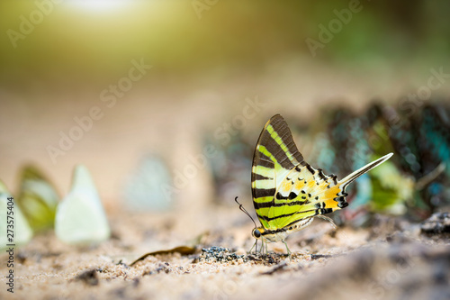 © nitinai2518, Fototapeta premium Butterflies eat minerals from the ground.