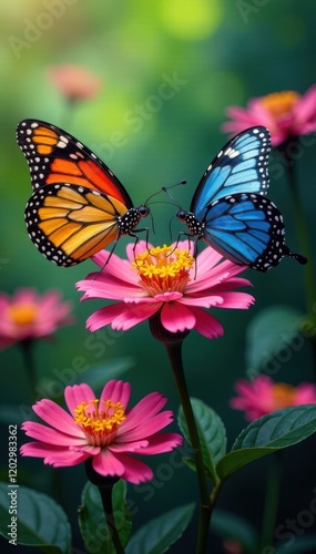 Fototapeta premium Butterflies sipping nectar from a colorful flower cluster, butterfly,...