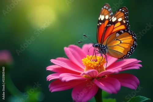 © vilavanh, Fototapeta premium Butterflies sipping nectar from a colorful flower, petals, leaves